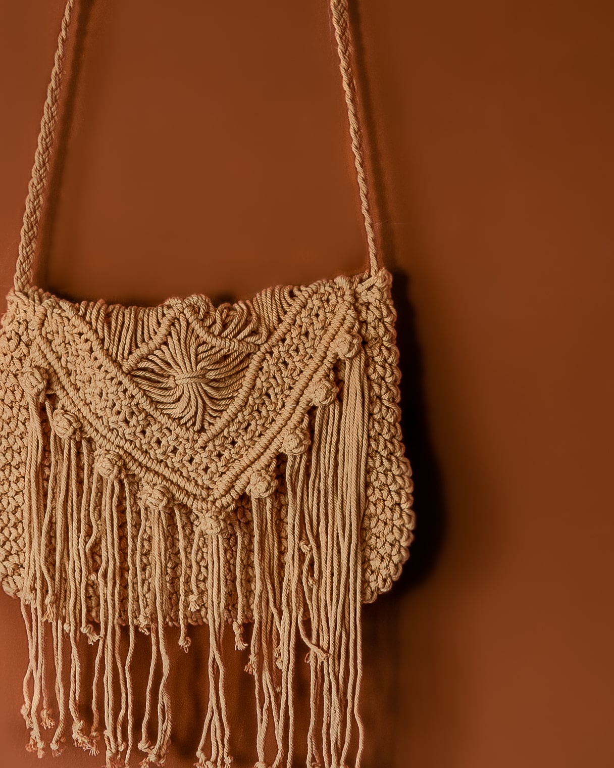 Borsa in macrame realizzata a mano, in perfetto stile Boho.