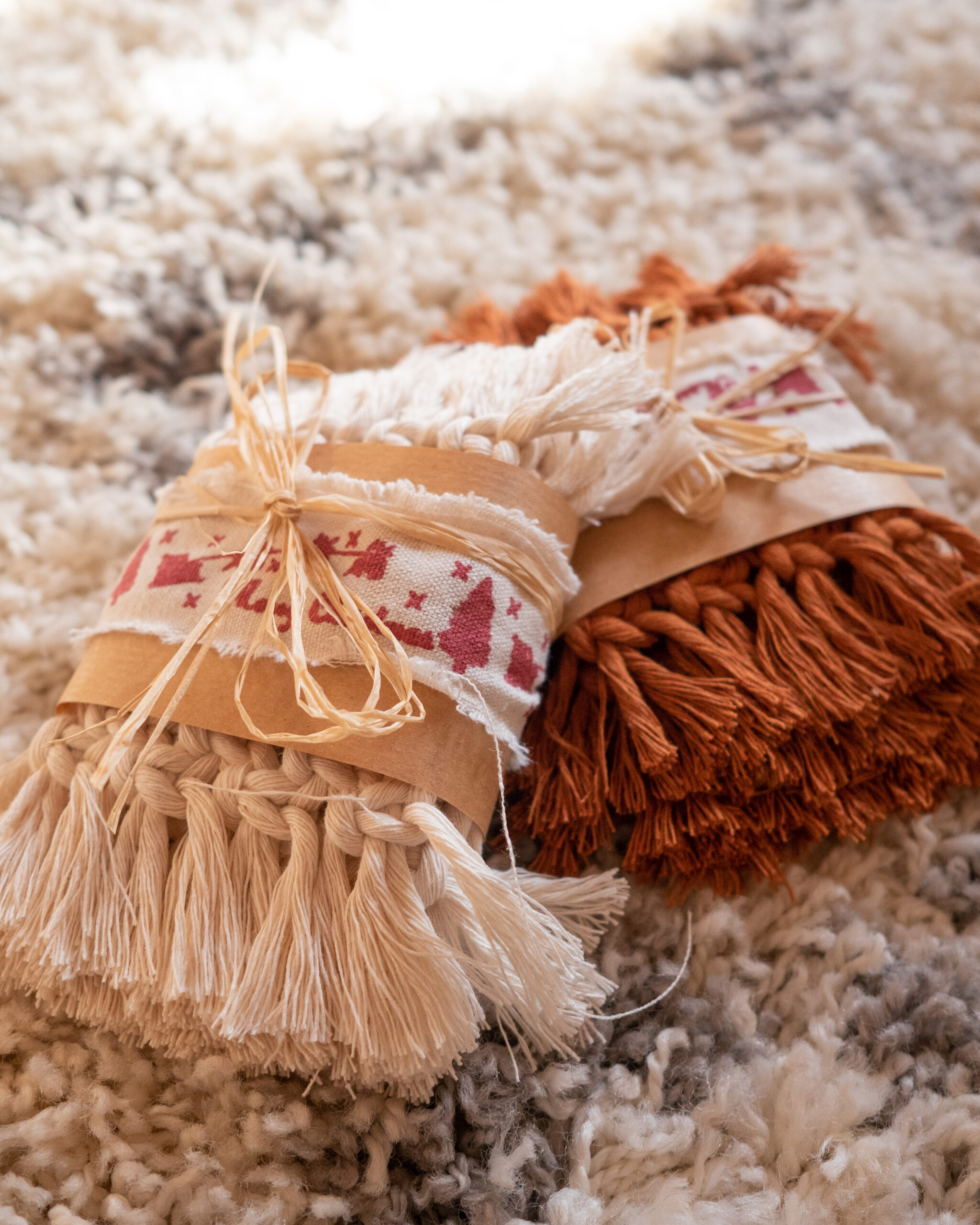Set di 4 Sottotazze in macrame realizzato a mano con materiali naturali.