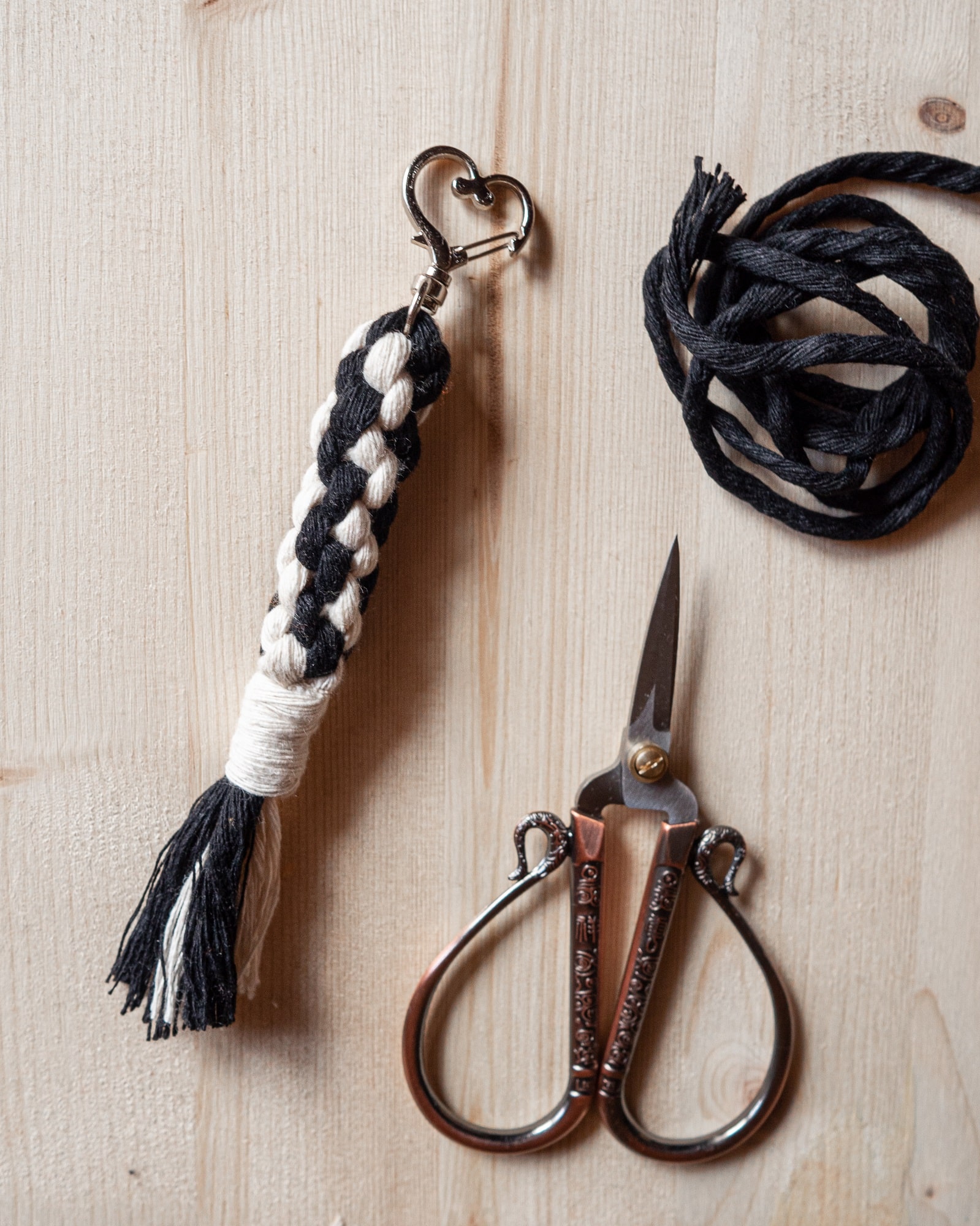 Portachiavi in macrame realizzato a mano.