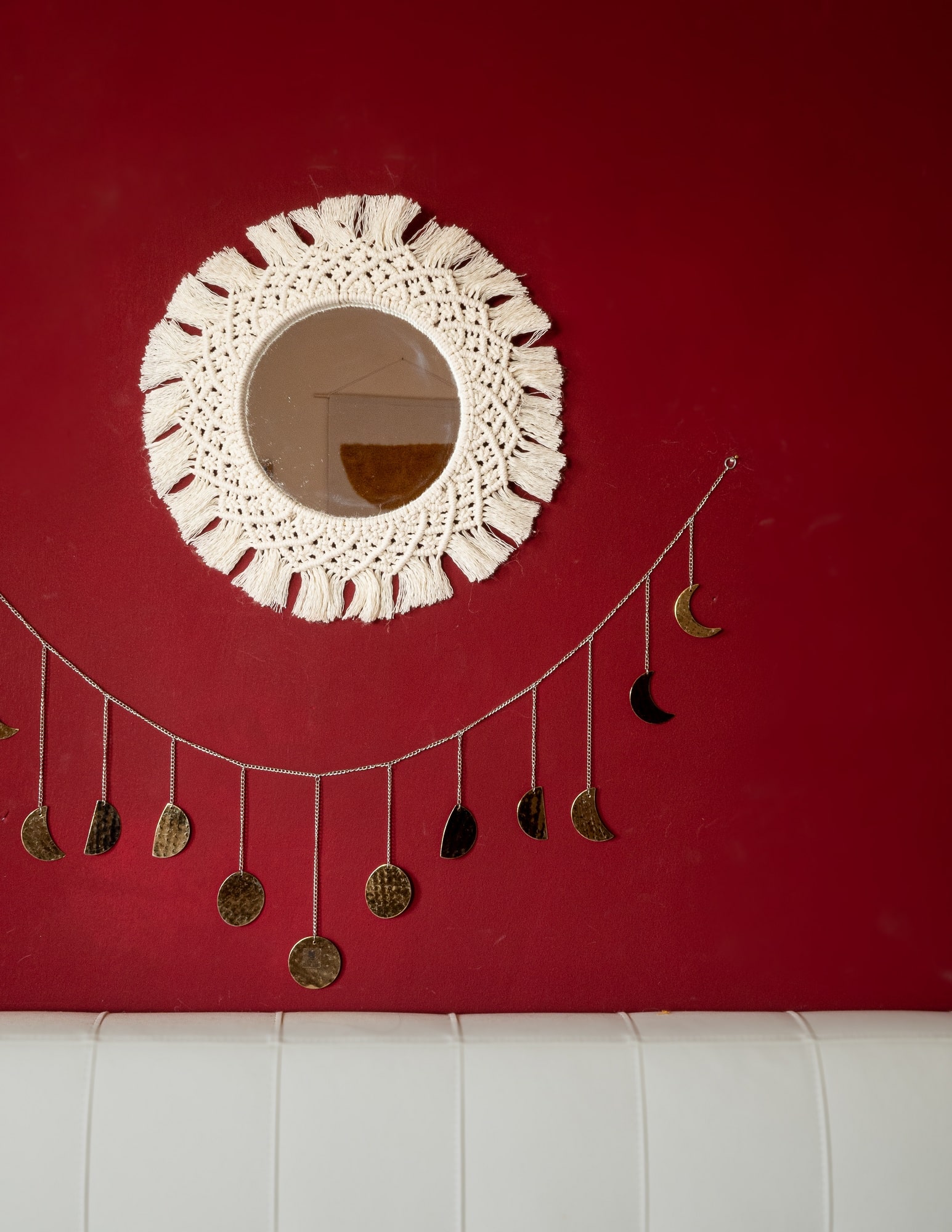 Specchio con cornice in macrame realizzato a mano perfetto per dare un tocco Boho al tuo arredamento.