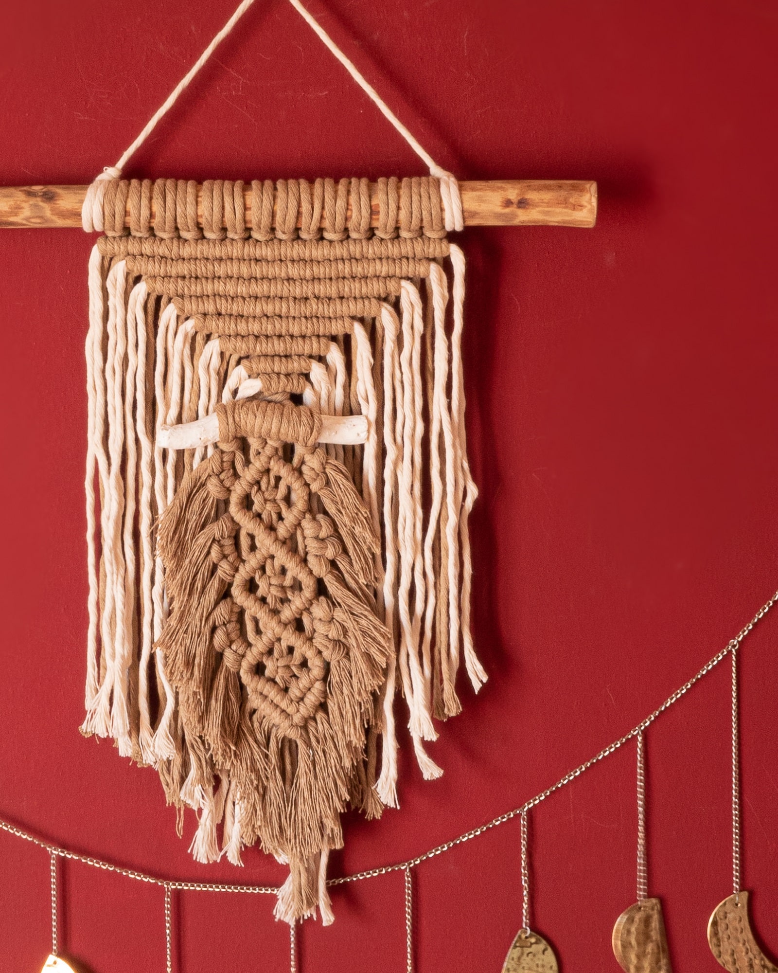 Indiana è un piccolo wall hanging di macrame realizzato a mano che si ispira alla cultura dei nativi americani. Era infatti loro usanza adornare il corpo con molti accessori e la piuma era sicuramente uno dei loro preferiti.